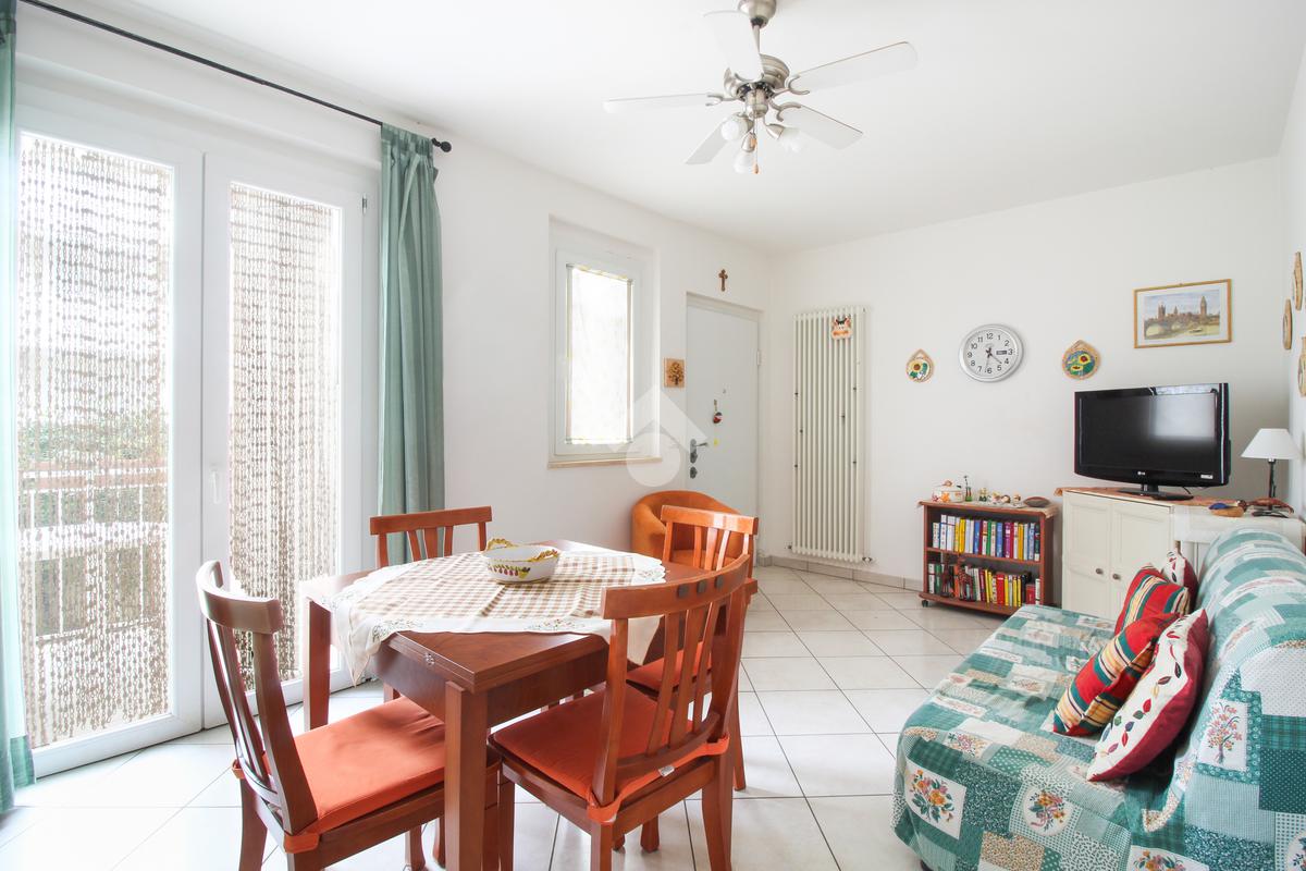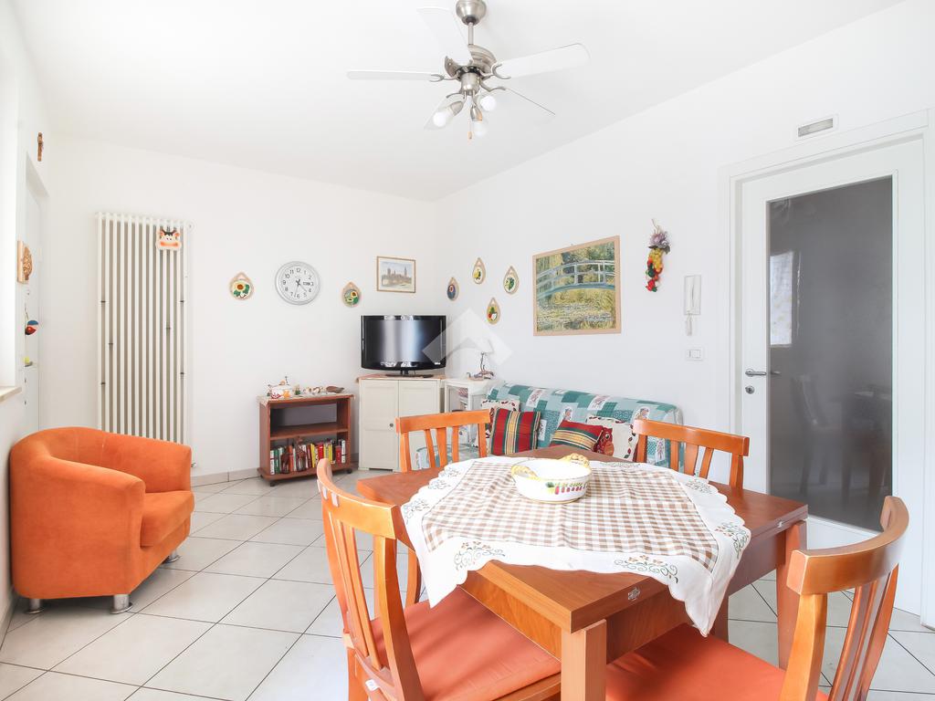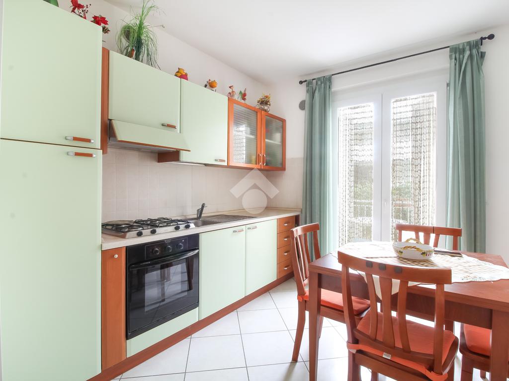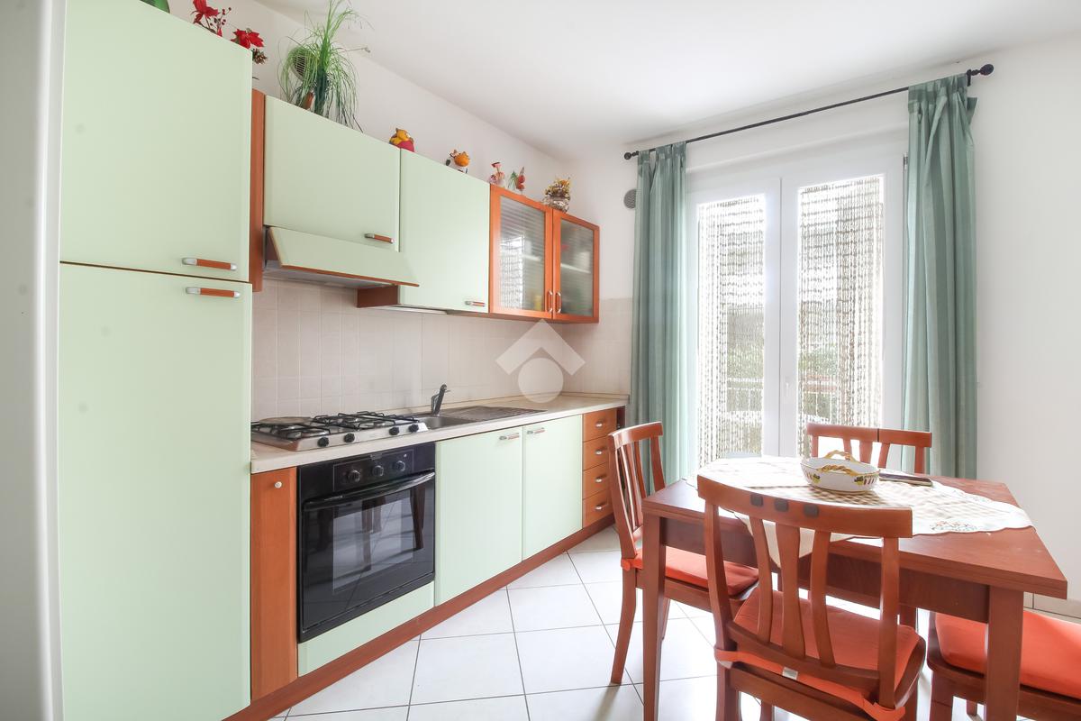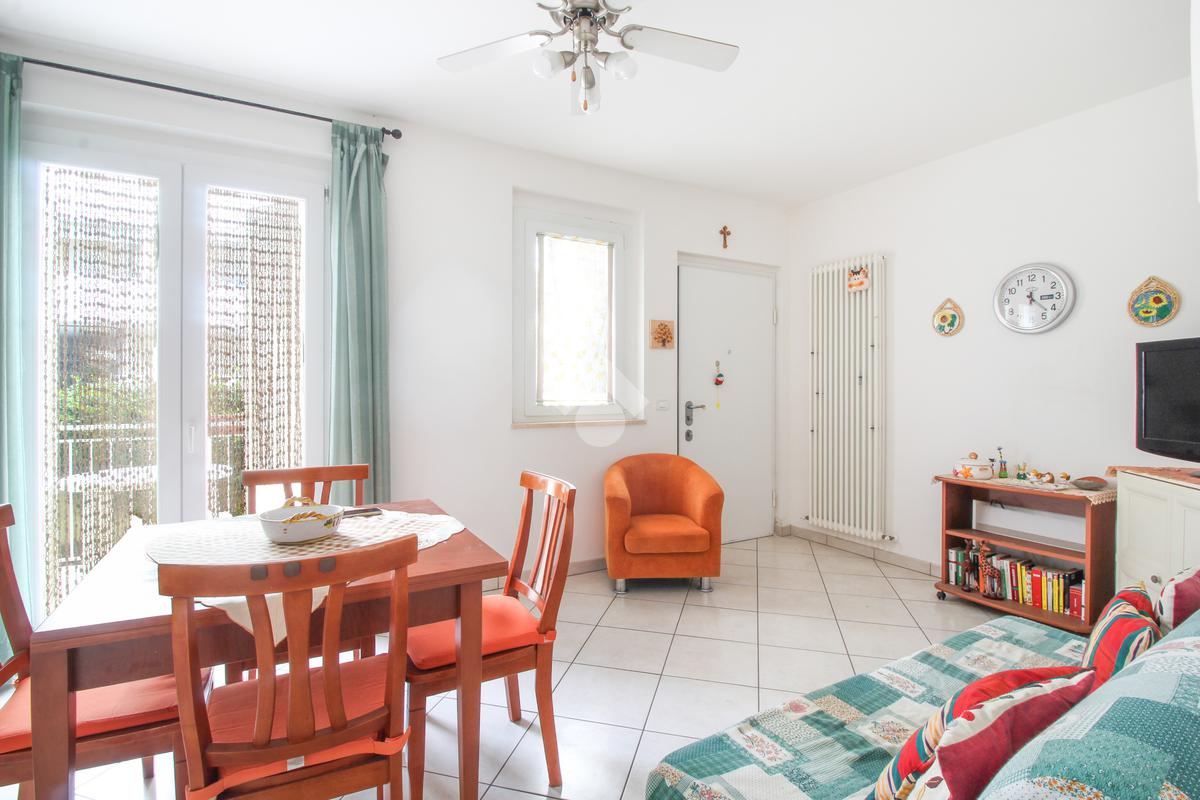 L'appartamento è così composto: ingresso su soggiorno con angolo cottura a vista, disimpegno con ripostiglio, due camere da letto, una matrimoniale e una singola ed un bagno finestrato con box doccia.