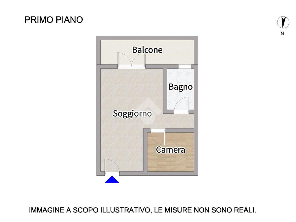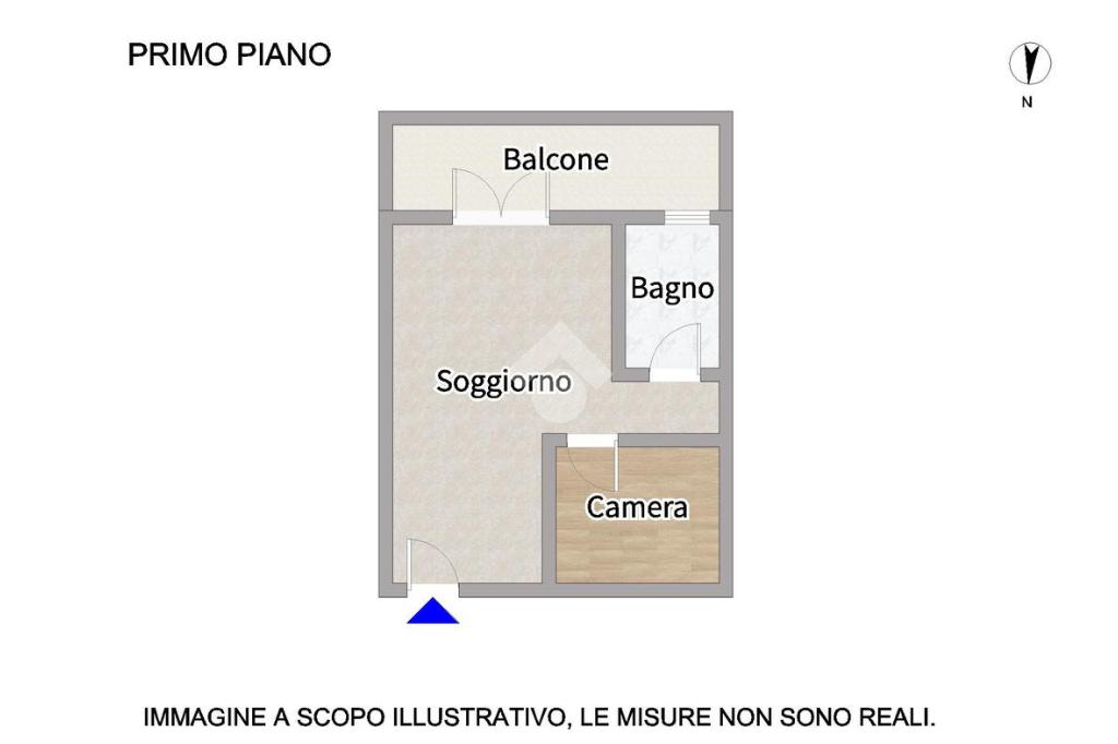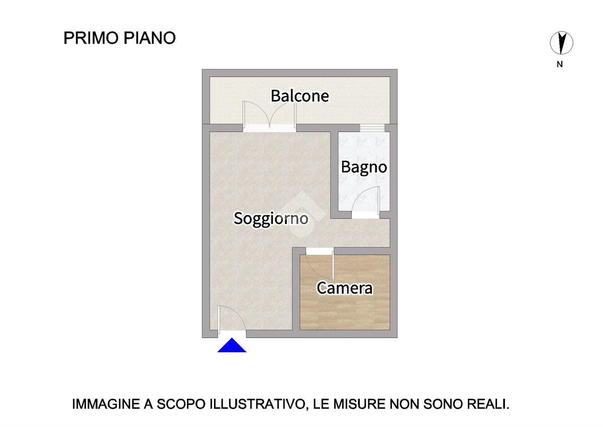 La soluzione è così composta: ingresso su soggiorno con angolo cottura ed accesso ad un balcone lato sud; troviamo poi una camera da letto matrimoniale ed un bagno finestrato con box doccia.