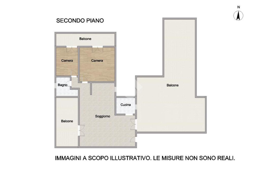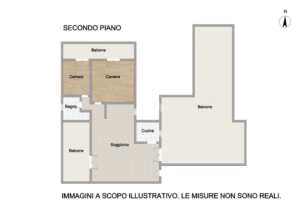 L'appartamento è così composto: ingresso su soggiorno con angolo cottura separato, accesso ad un balcone abitabile, disimpegno, una camere da letto matrimoniali, una camera doppia, un bagno finestrato con doccia.